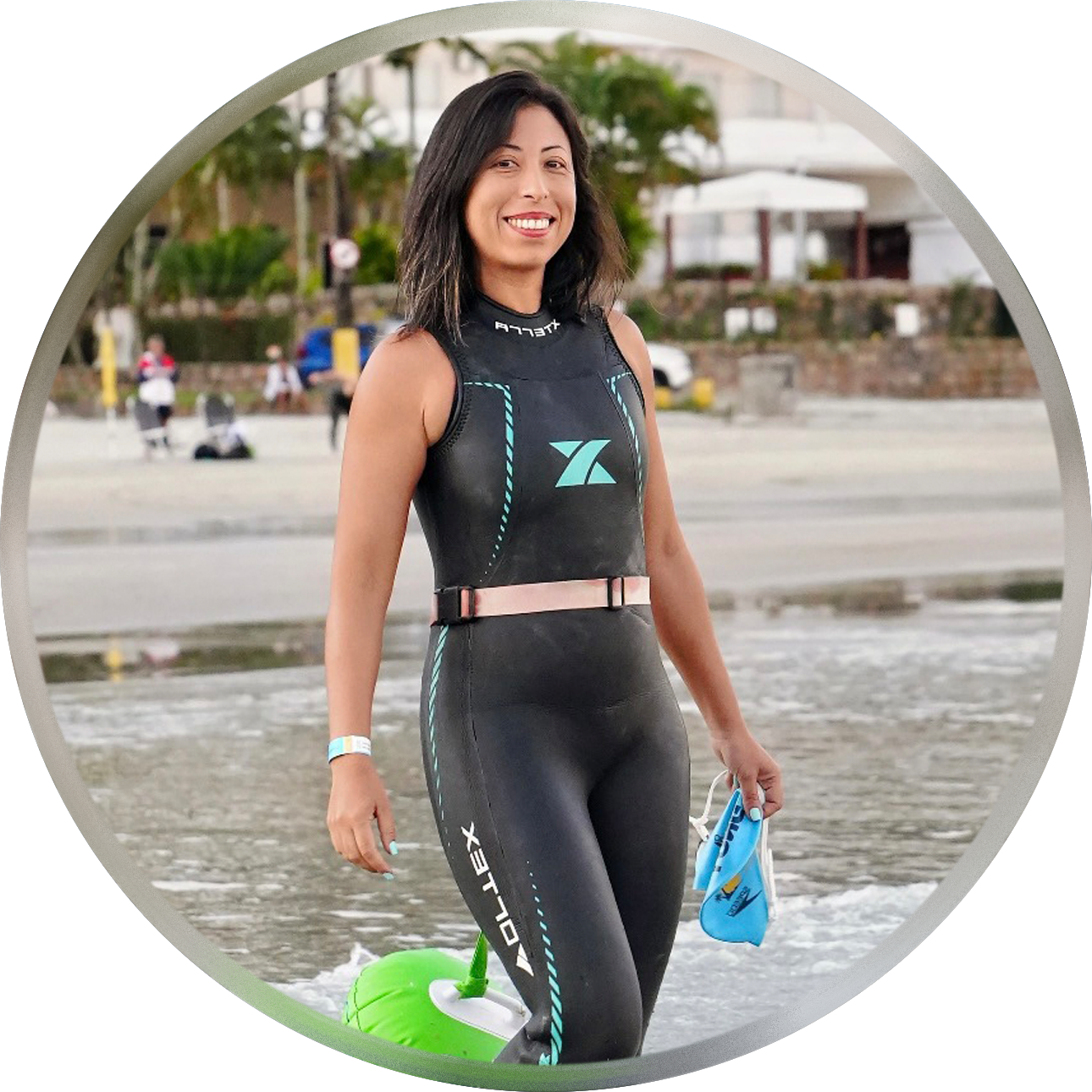 Monica Biviana Calderón Guzman é nadadora colombiana radicada em Paraty – RJ. Aos 41 anos, mãe de quatro filhos, cientista política, socióloga, pedagoga e atleta de ultramaratonas aquáticas, ela transforma cada braçada em superação e propósito.